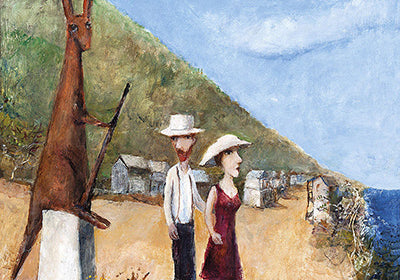 In 1987, Shead moved to Bundeena, New South Wales, and began his most famous series of paintings, the D.H. Lawrence series, inspired by the writer’s novel Kangaroo of which he had been a fan for decades. The landscape of Bundeena struck Shead as being very similar to the town of Thirroul where the novel was written and the works he created as a part of the collection depict the universe of the story as a series of rich, symbolic visions of coastal Australia.