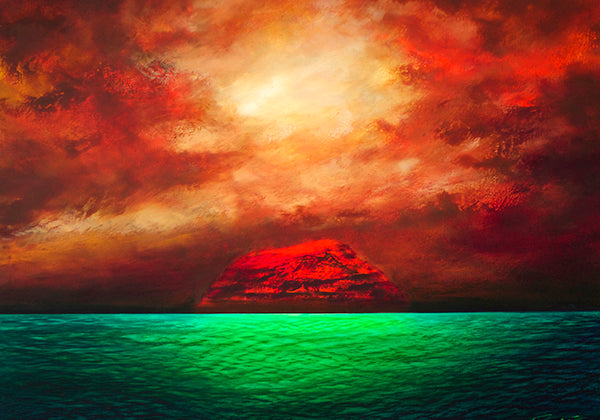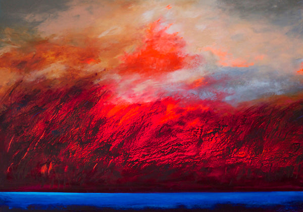 ‘Susan Weaver’s hieratic landscapes have an extraordinary luminosity from a range of reds created by rubbing back layers of oil pastel. The colour is an optical experience bordering on the mystical: the landscapes depict the visionary as much as the world of external reality”Meryl Ryan - Arts Reviewer Curator Lake Macquarie Art Gallery 26/9/98
